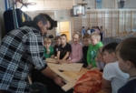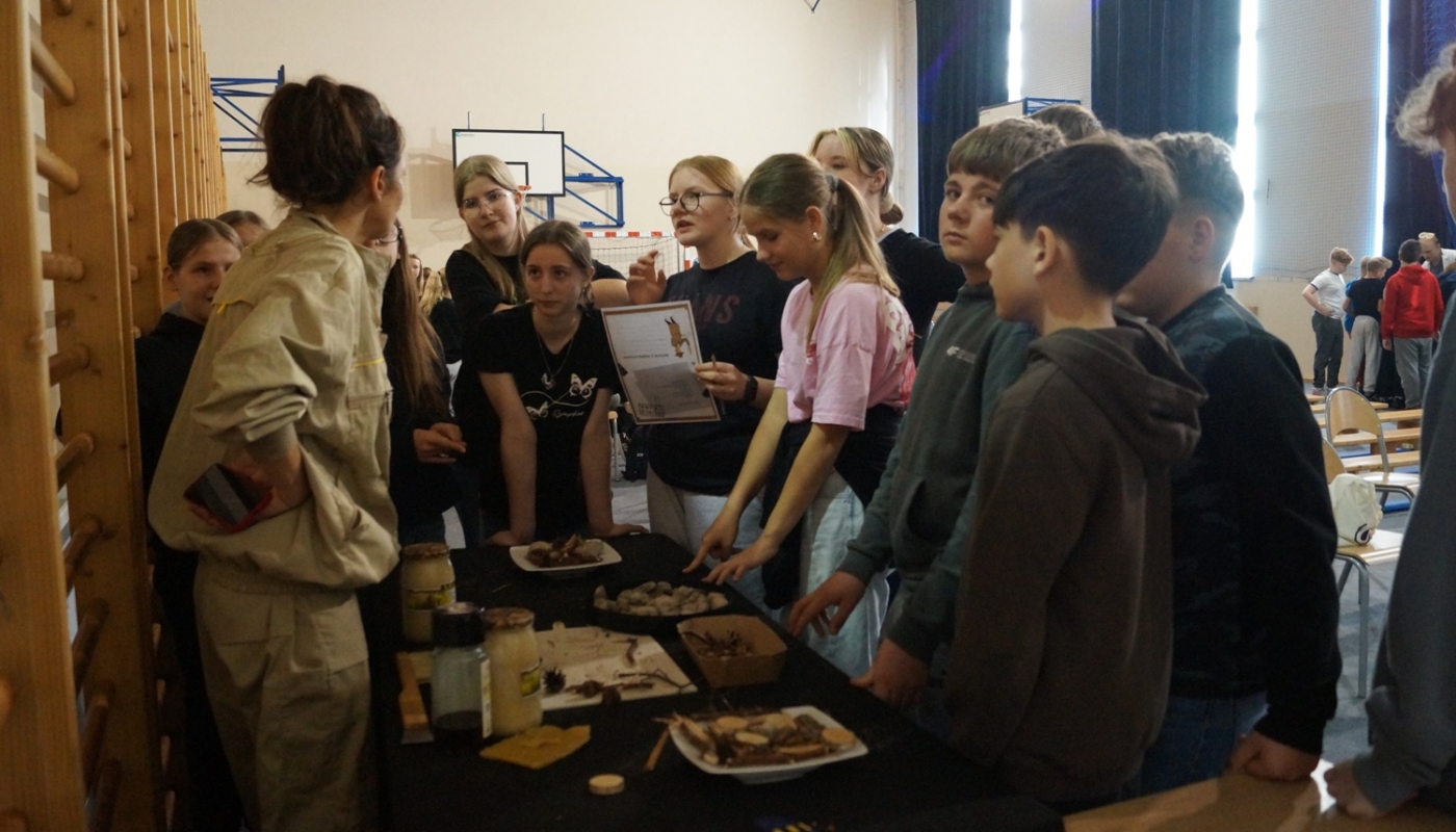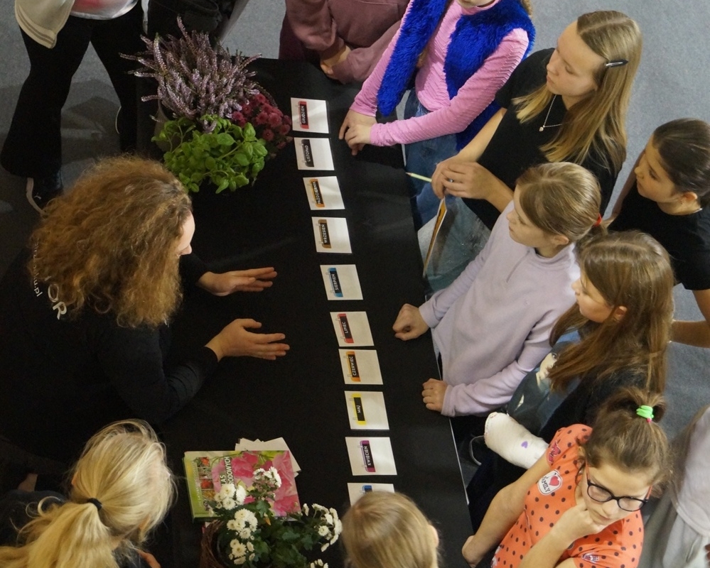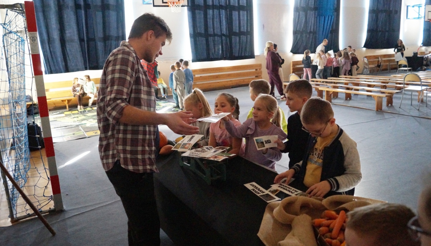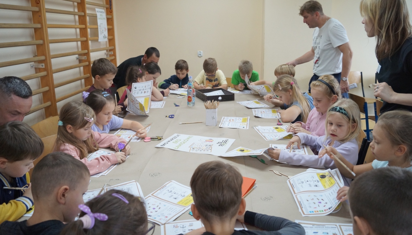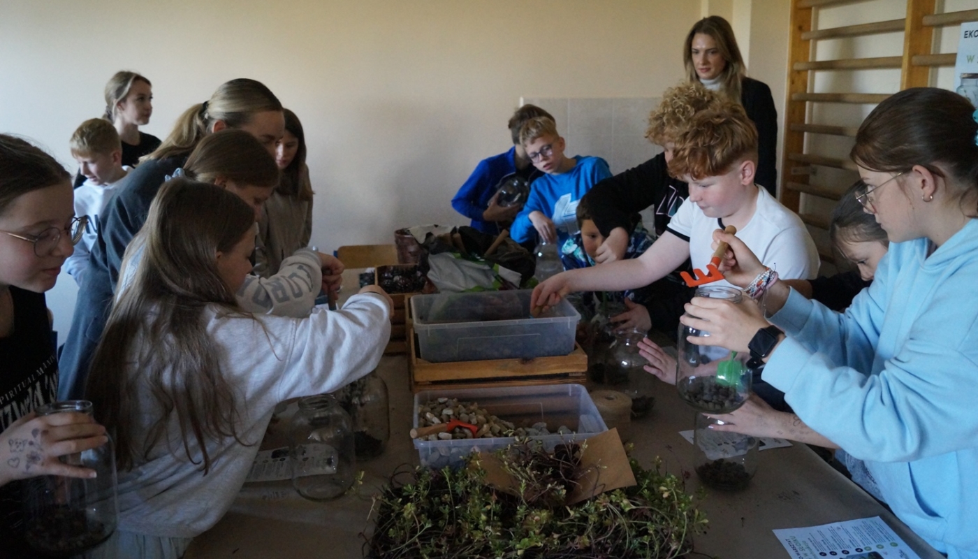W przestrzeni warsztatowej uczniowie tworzyli naturalne dekoracje i przedmioty inspirowane przyrodą: zawieszki z chrobotkiem na drewnianych sercach, jesienne liście z życzeniami dla Przyrody, „szczęśliwą pszczołę”, las w słoiku oraz ekologiczne ramki do galerii zdjęć. Nie zabrakło również łamigłówek SuperBohatera Przyrody i zespołowej gry drewnianej, która rozwijała koncentrację, cierpliwość i komunikację.