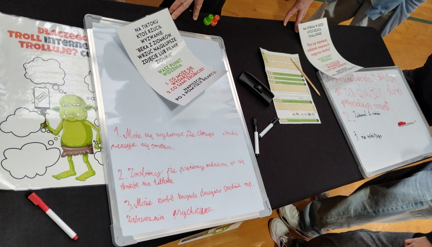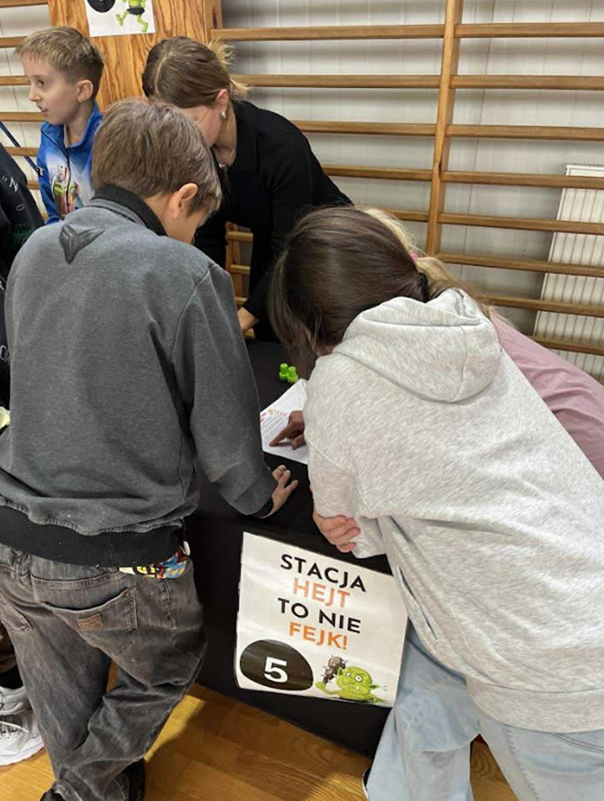 przygotowanie i realizacja 7 stacji tematycznych dot. hejtu, fake newsów, plotki i uzależnień cyfrowych