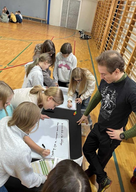 Gra oparta była na 7 stacjach, przez które równolegle przechodziły drużyny klasowe, wzmacniając współpracę i zaangażowanie. Uczniowie konfrontowali się z problemami hejtu, fake newsów, plotki, stereotypów i uzależnień cyfrowych, poznając ich mechanizmy oraz skutki dla relacji rówieśniczych i dobrostanu.