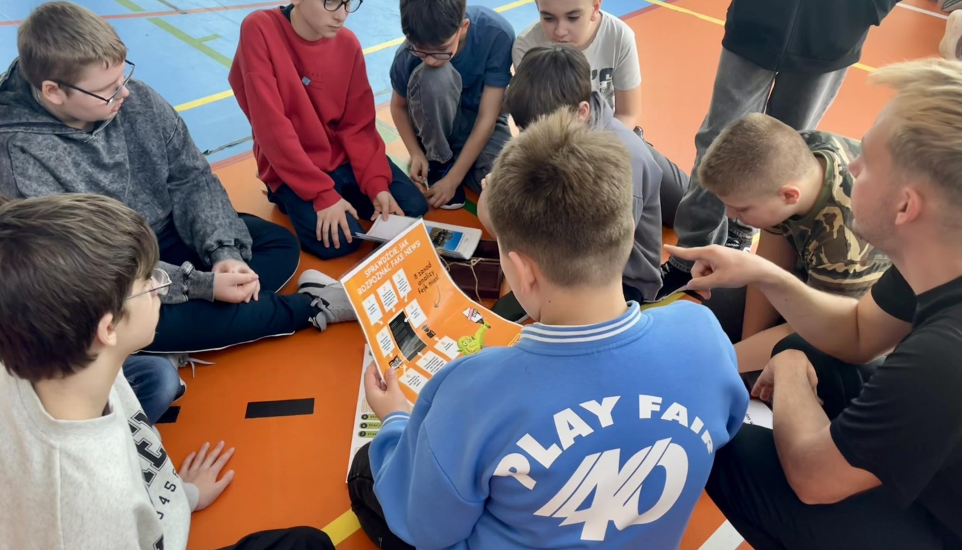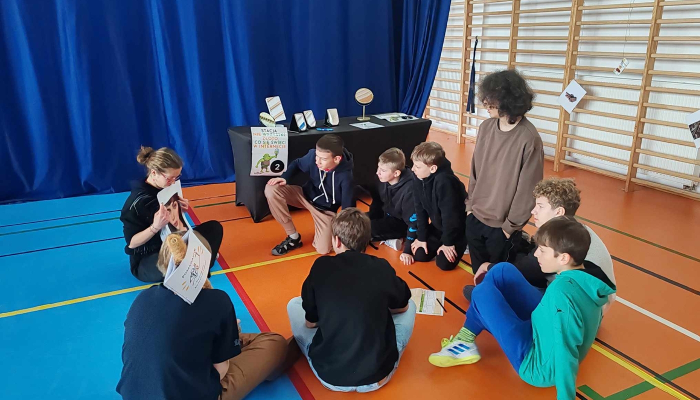 Uczniowie, pracując drużynowo na 7 stacjach gry, konfrontowali się z realnymi sytuacjami hejtu, fake newsów, plotki i presji grupy w środowisku szkolnym oraz online. Doświadczenie gry pozwoliło im zrozumieć mechanizmy przemocy rówieśniczej i konsekwencje bierności, a także przećwiczyć właściwe reakcje i odpowiedzialne zachowania w sieci.