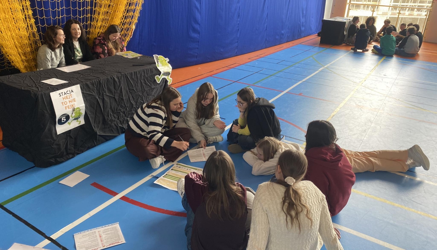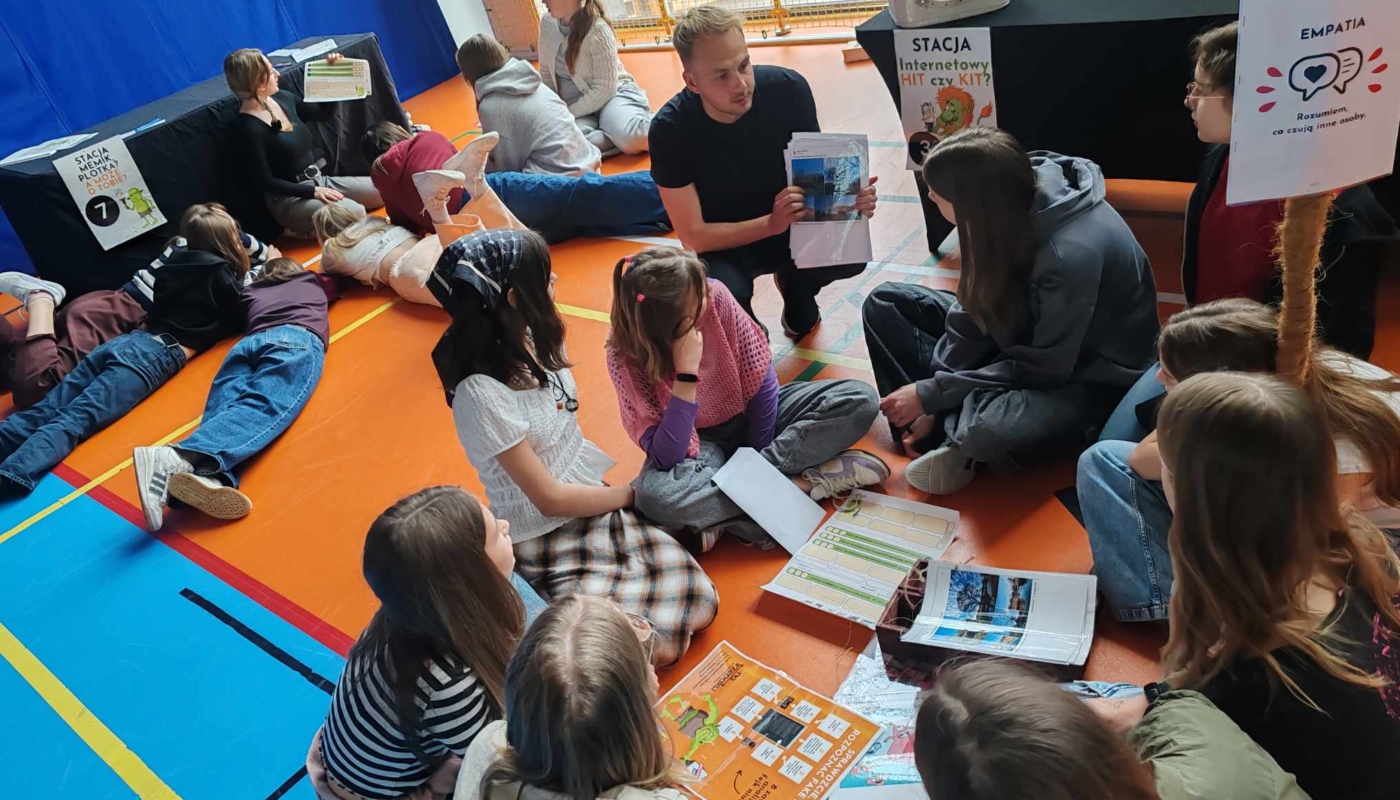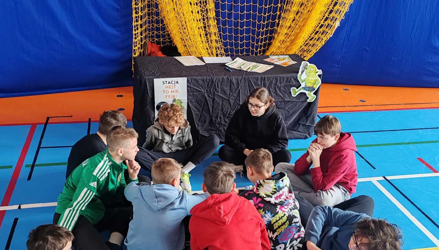 • przygotowanie i prowadzenie 7 stacji tematycznych dot. hejtu, fake newsów, plotki, presji grupy i uzależnień cyfrowych